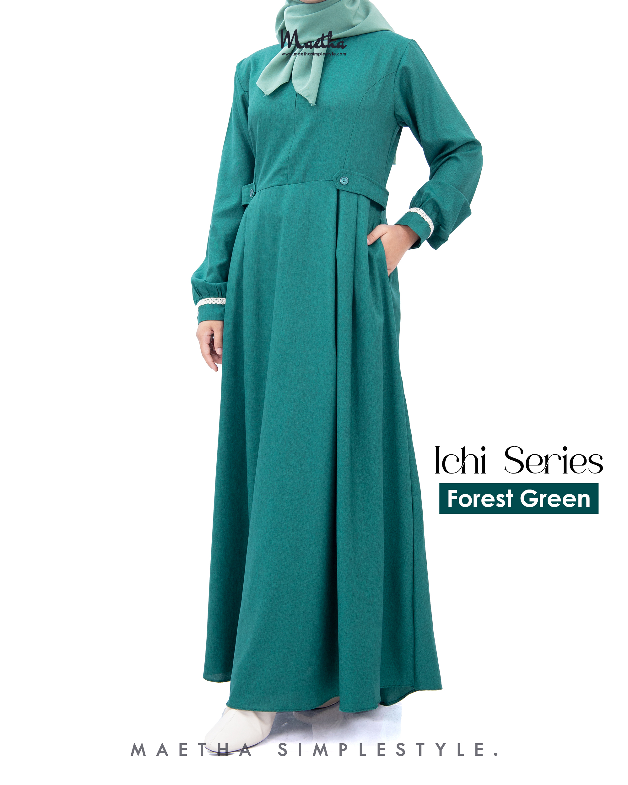 ✨ Lengan manset polos berkancing (wudhu friendly).